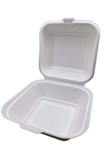 Suikerriet hamburgerbakjes met klapdeksel zijn smaakneutraal, olie-, vet- en vochtbestendig.